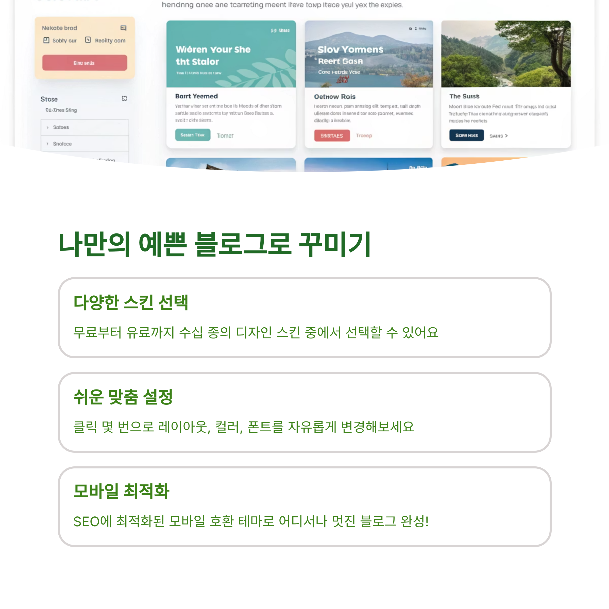 깔끔한 레이아웃, 카드형, 심플형 등 원하는 스타일을 고를 수 있습니다