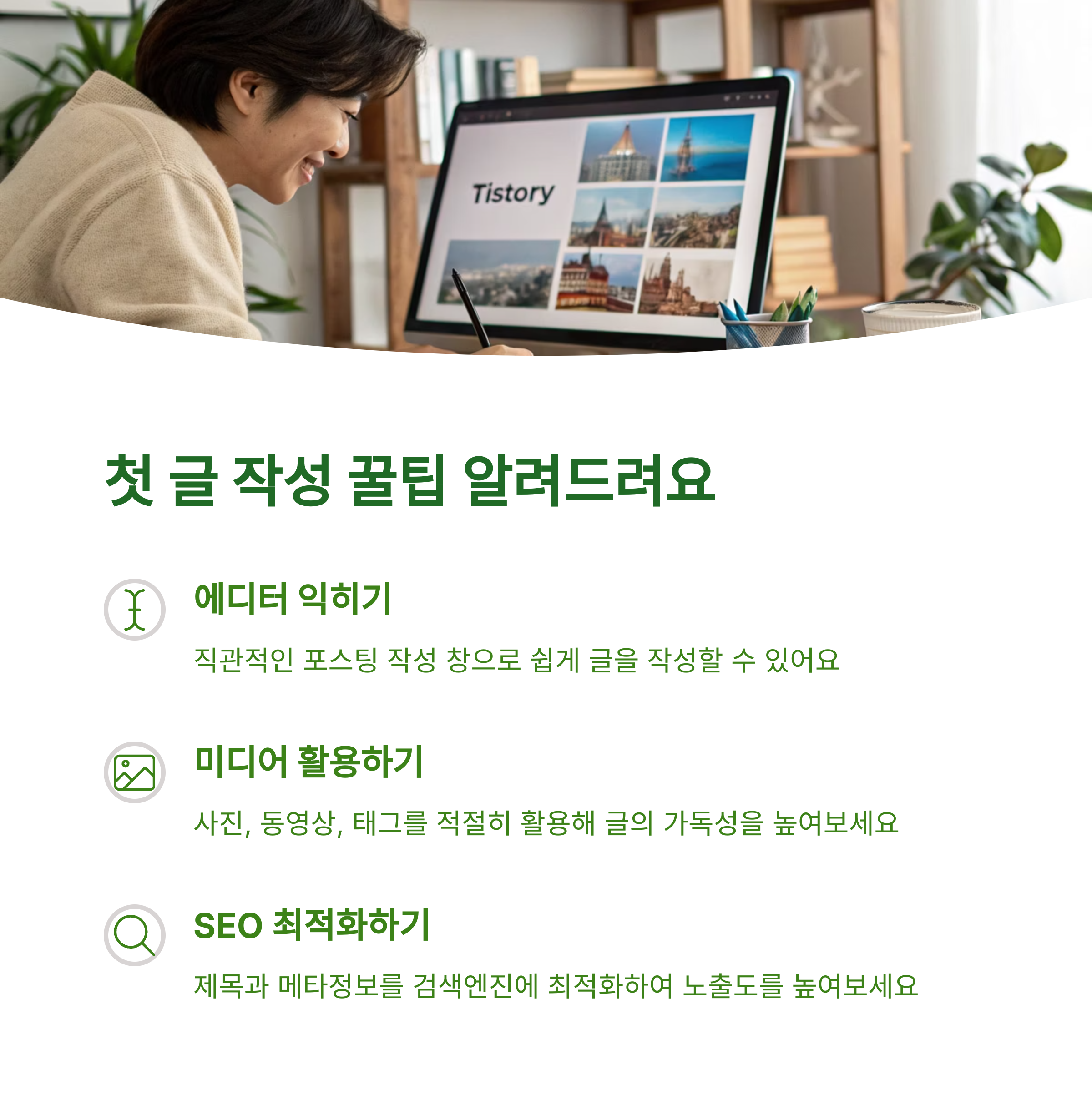 첫 글은 간단한 자기소개나 블로그 주제 소개도 좋습니다