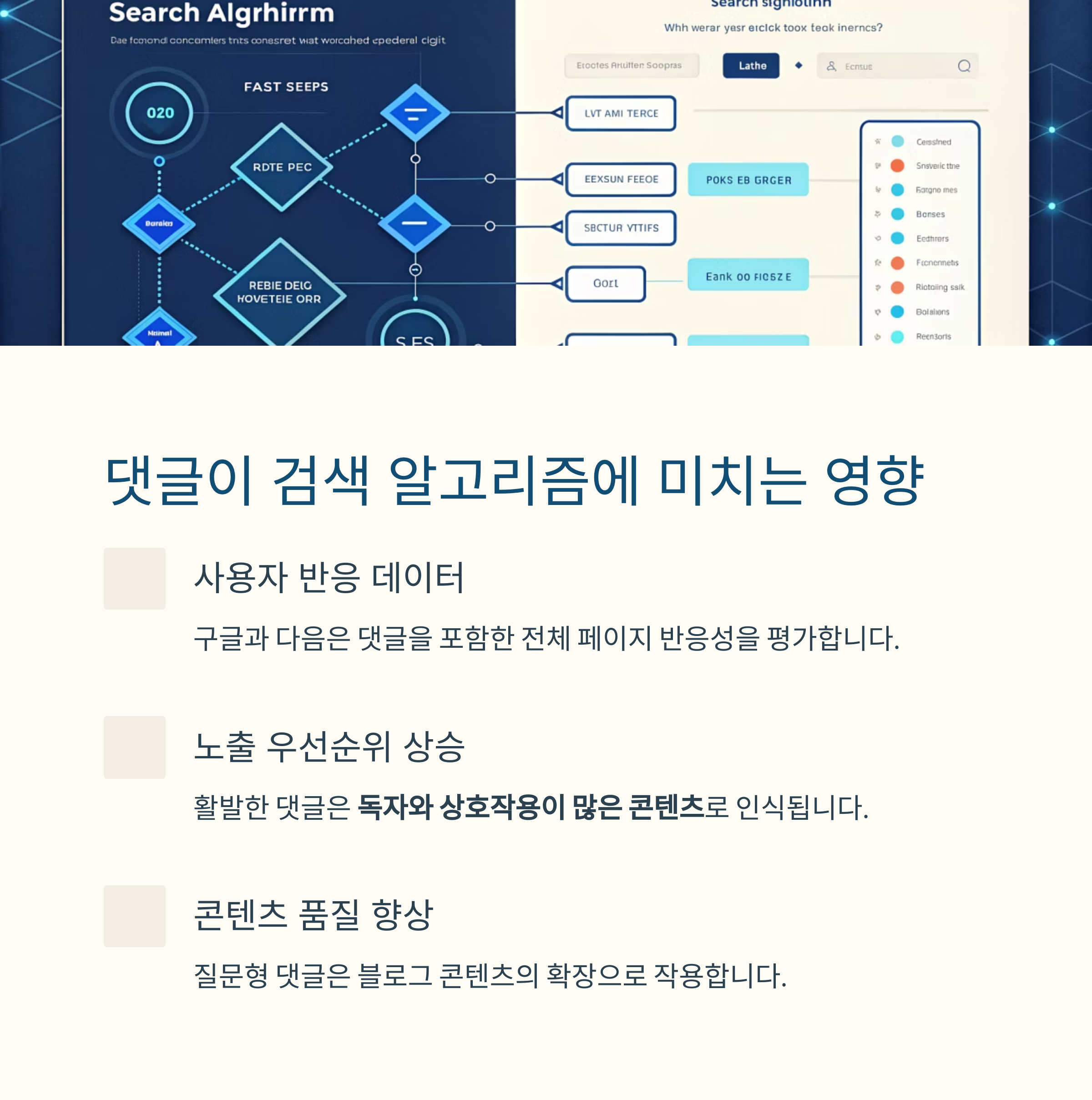 검색 알고리즘, 방문자 체류 시간, 재방문율에 영향을 주는 핵심 성장 요소입니다.