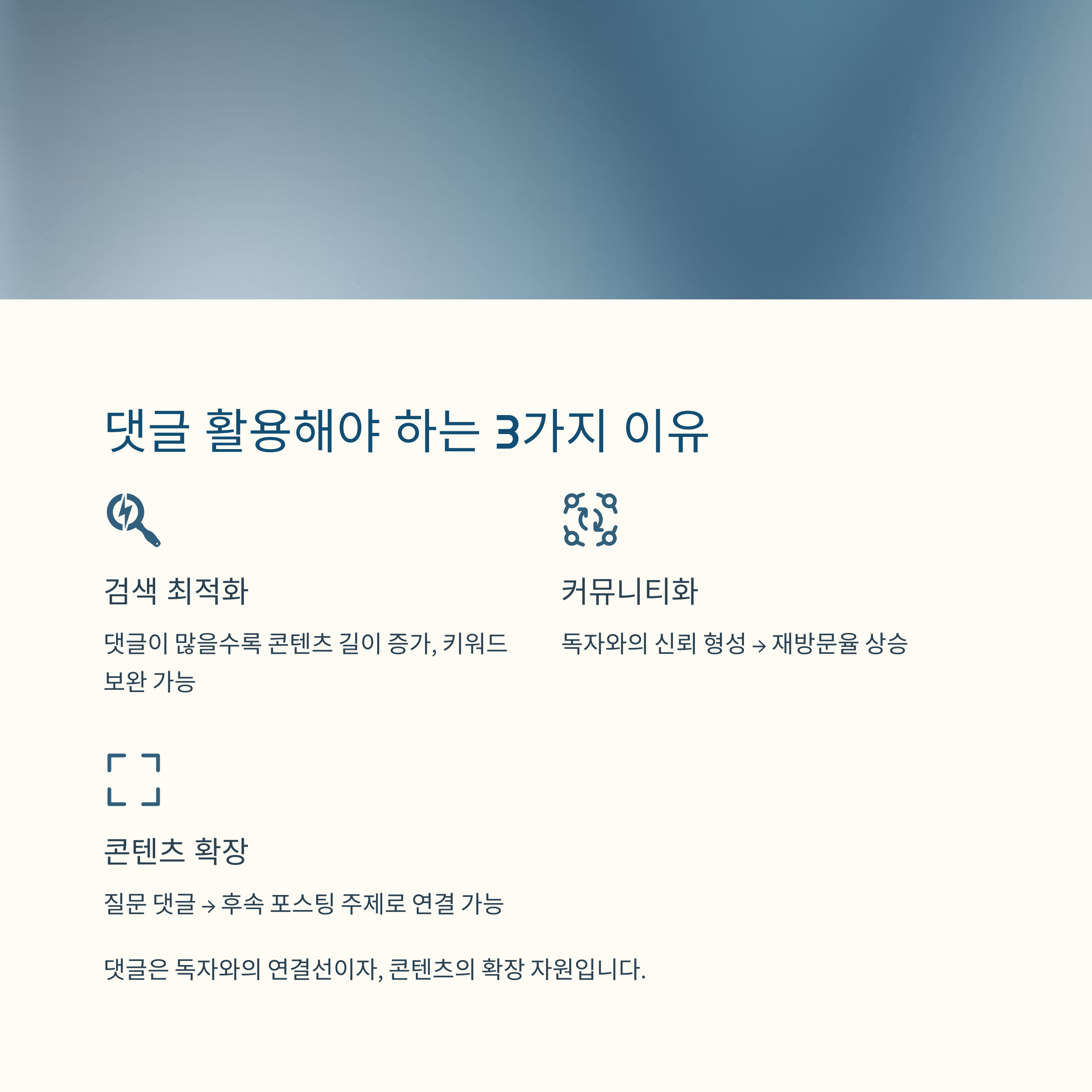 즉, 댓글은 독자와의 연결선이자, 콘텐츠의 확장 자원이 되는 것입니다.