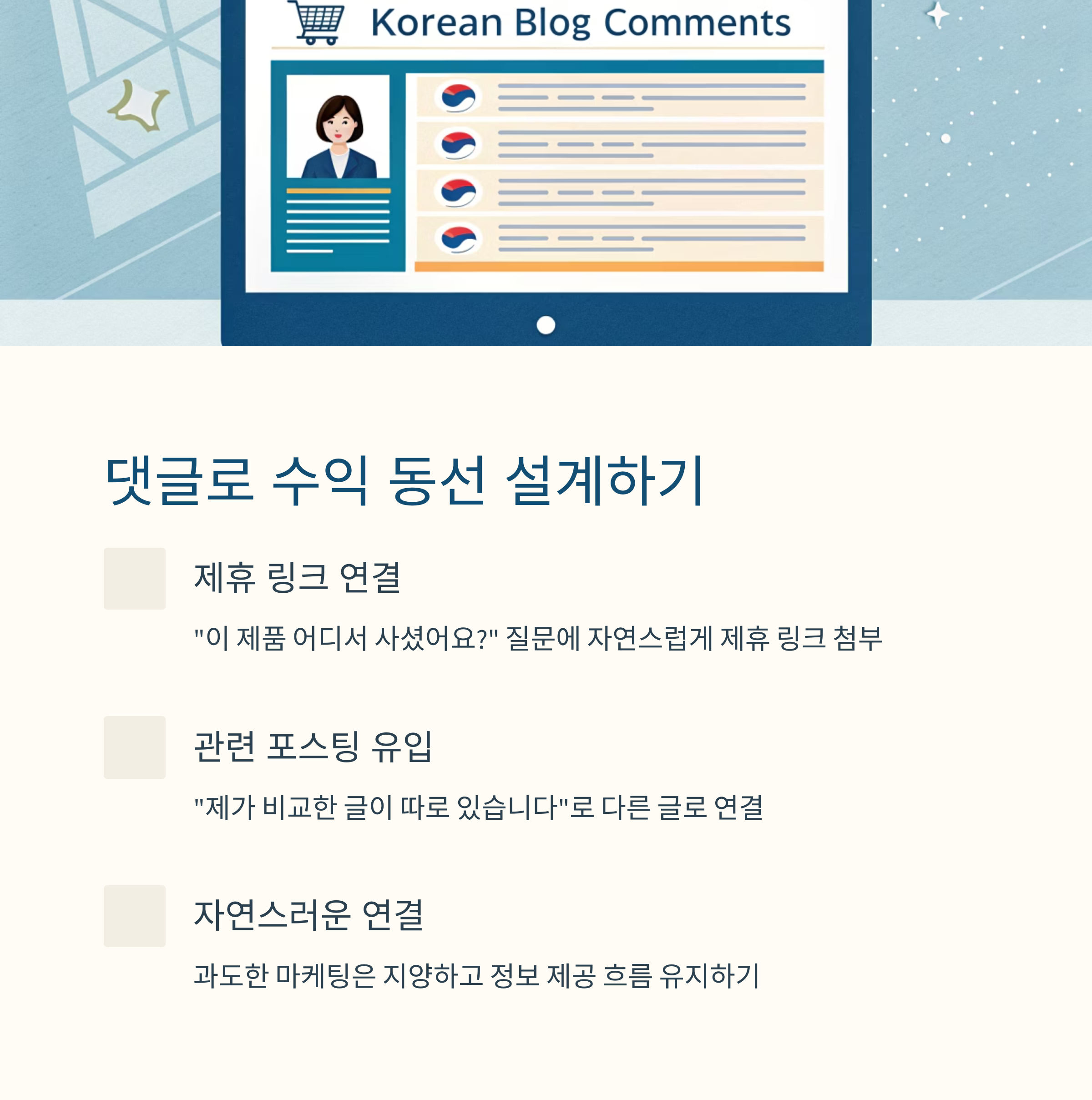 단순 정보 교환을 넘어, 댓글에서 제휴 링크나 후속 글로 연결하는 전략도 유효합니다.