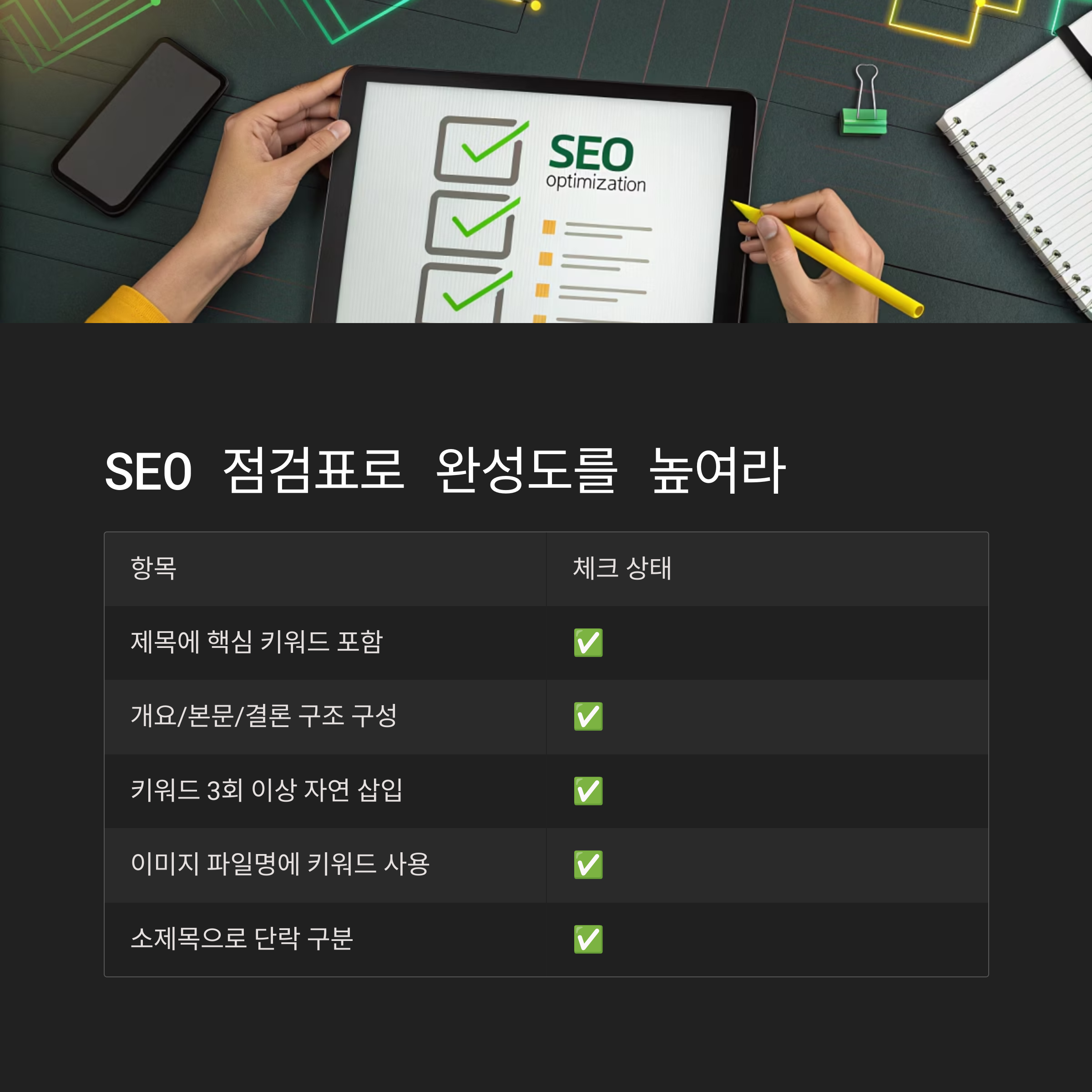 | 제목에 핵심 키워드 포함 | ✅ |