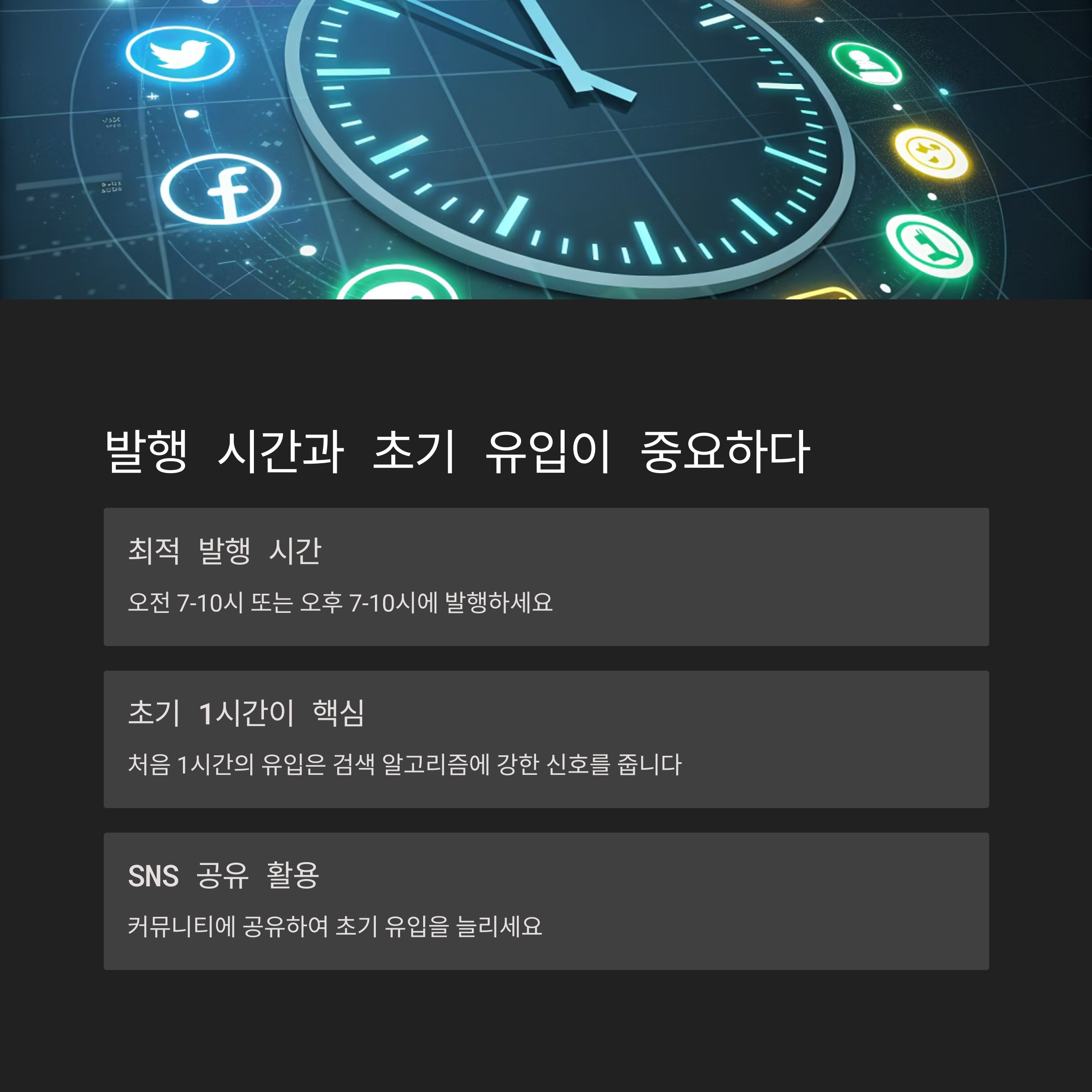 처음 1시간의 유입은 검색 알고리즘에 강한 신호를 보내기 때문에