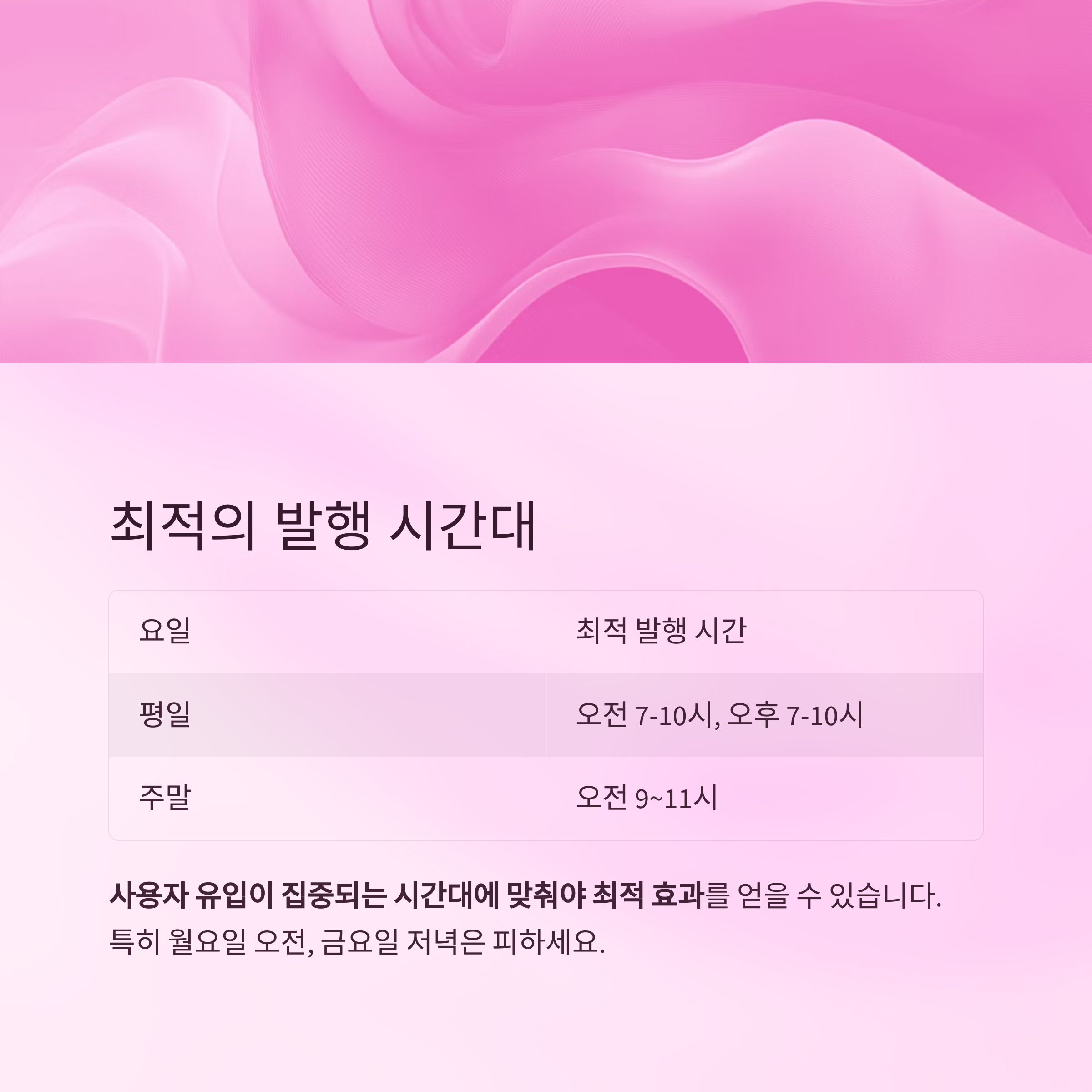 사용자 유입이 집중되는 시간대에 맞춰야 최적 효과를 얻을 수 있습니다