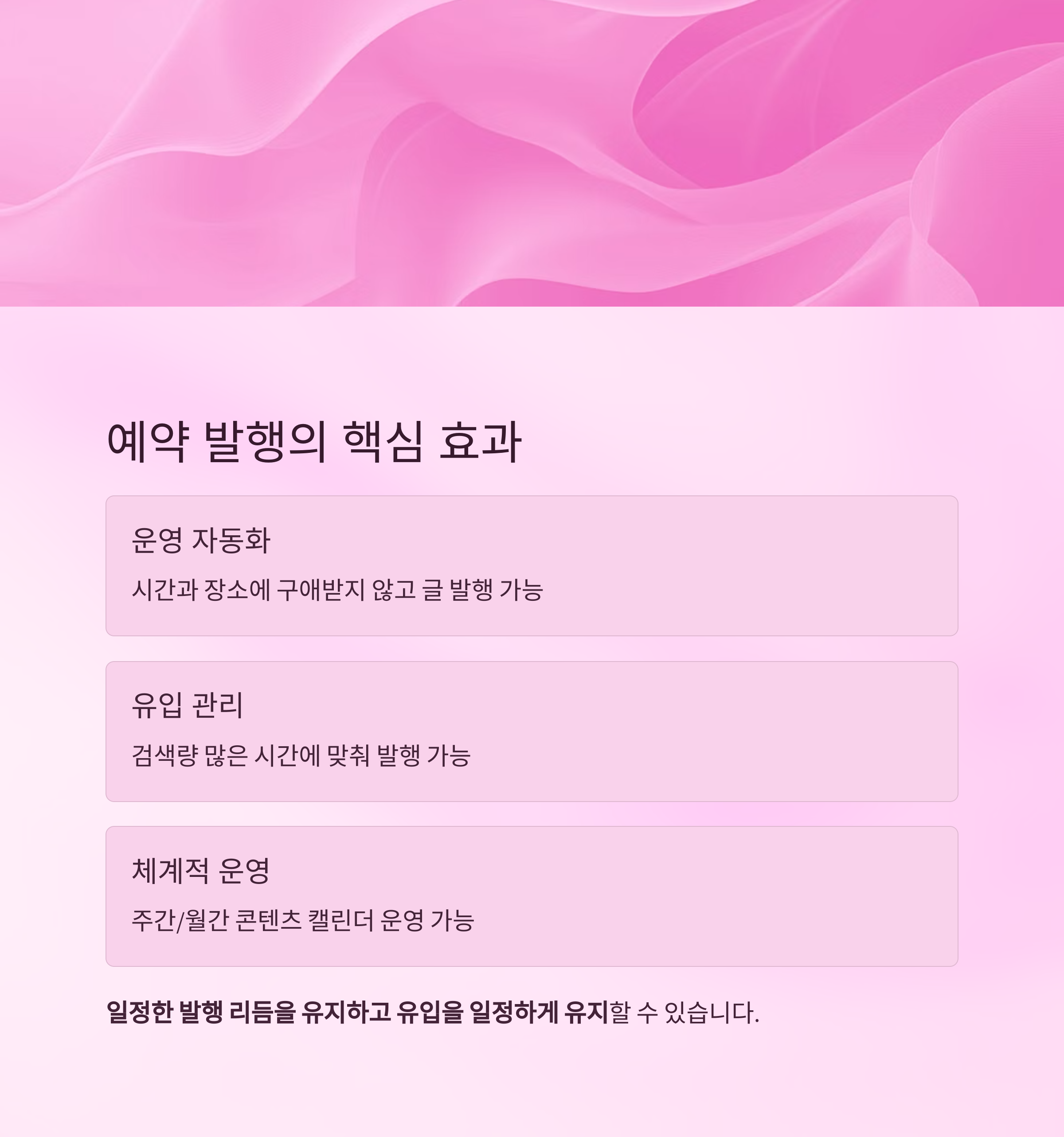예약 발행은 그 중심에서 운영의 안정성과 유입 흐름을 유지하는 핵심 수단입니다