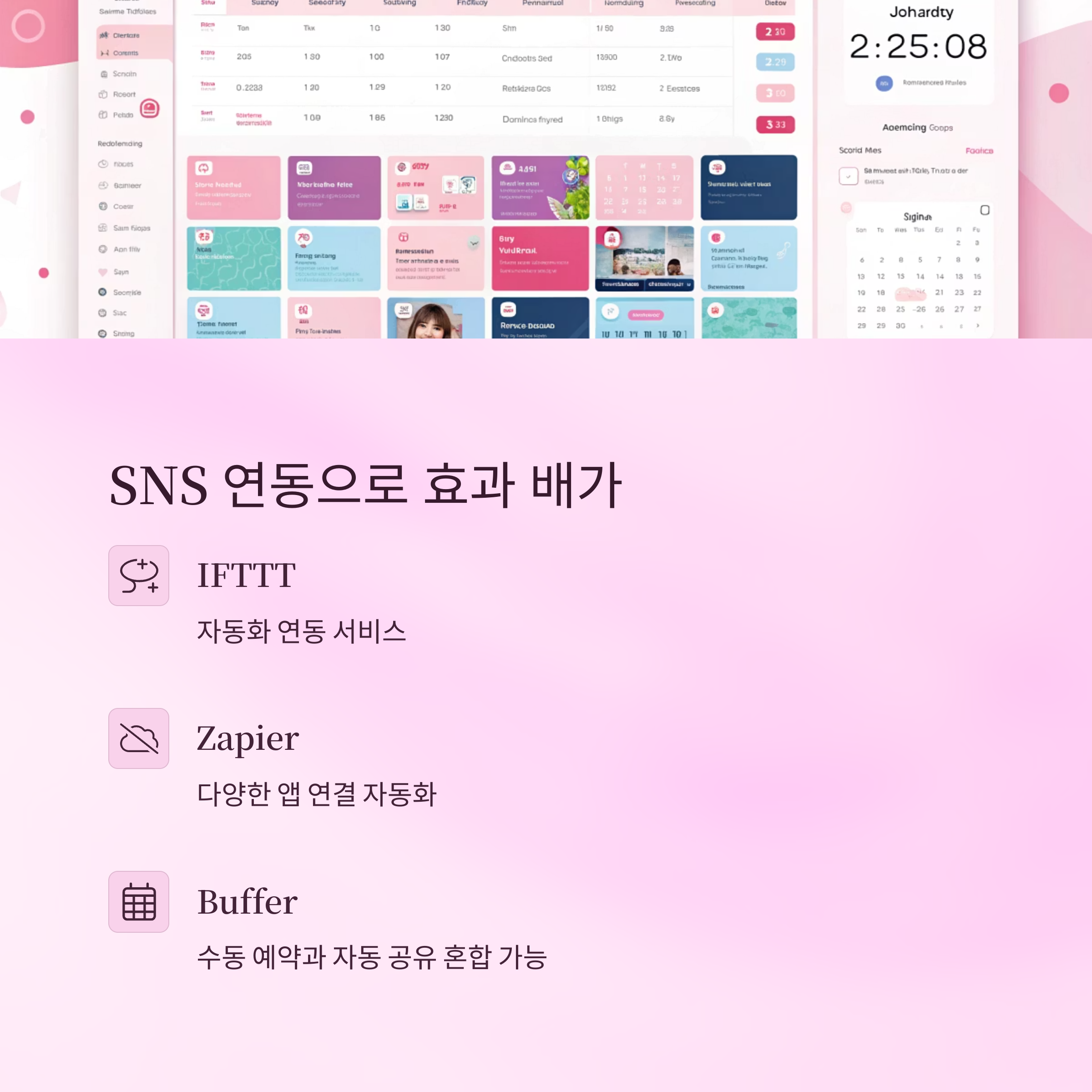 | 체계적인 운영 | 주간/월간 콘텐츠 캘린더 운영 가능 |