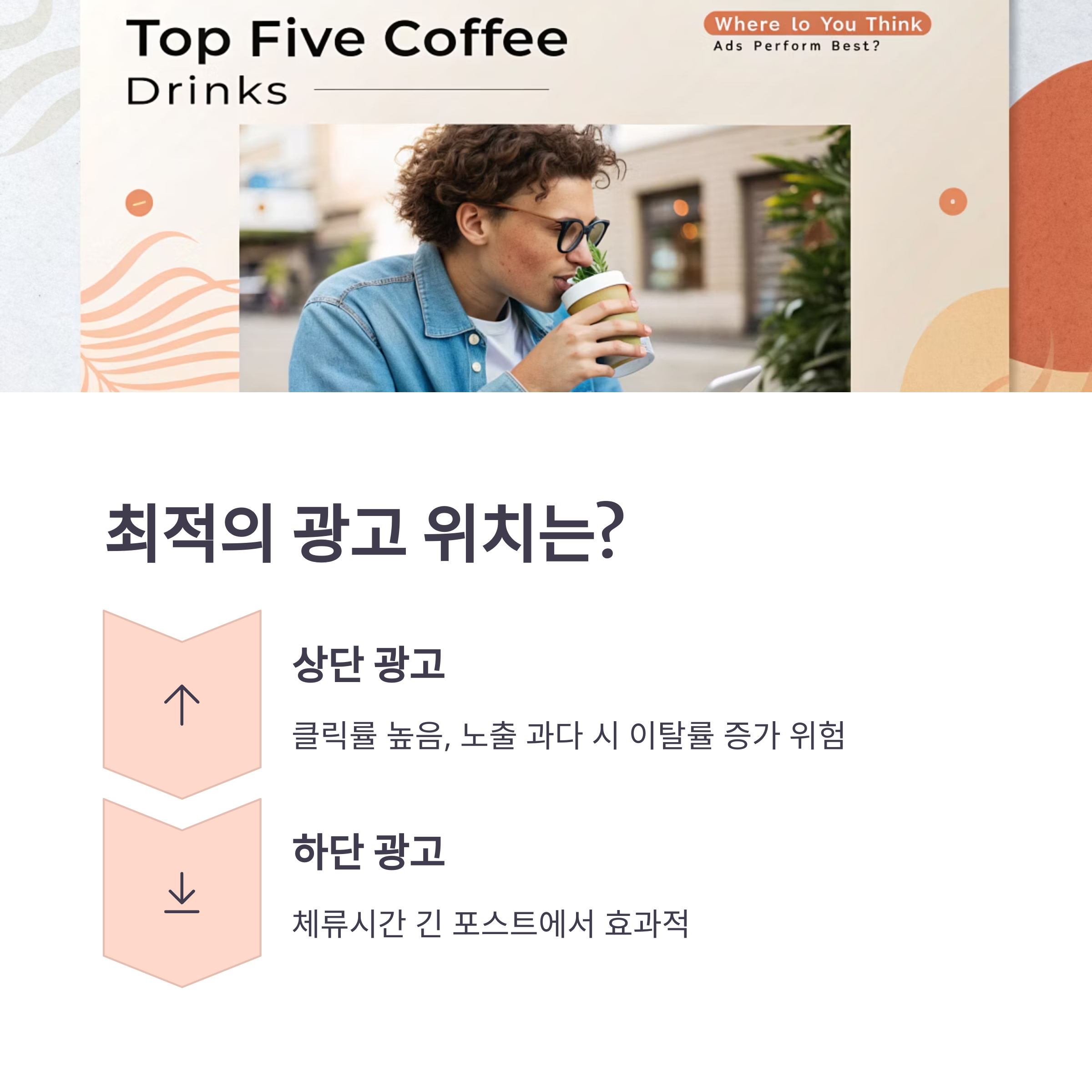 반면, 하단 광고는 체류시간이 긴 포스트에서 효과적입니다.