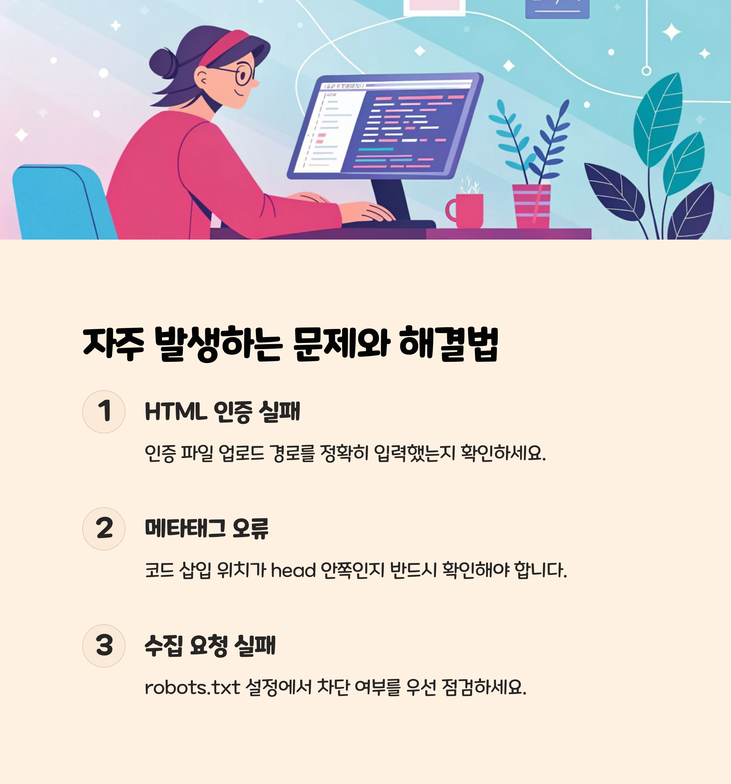 → 인증 파일 업로드 경로를 정확히 입력했는지 확인하세요. - 메타태그 오류