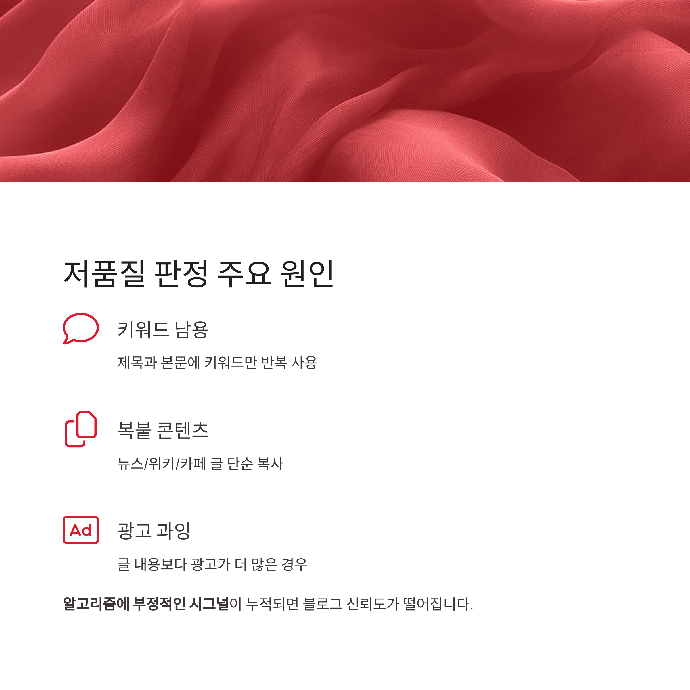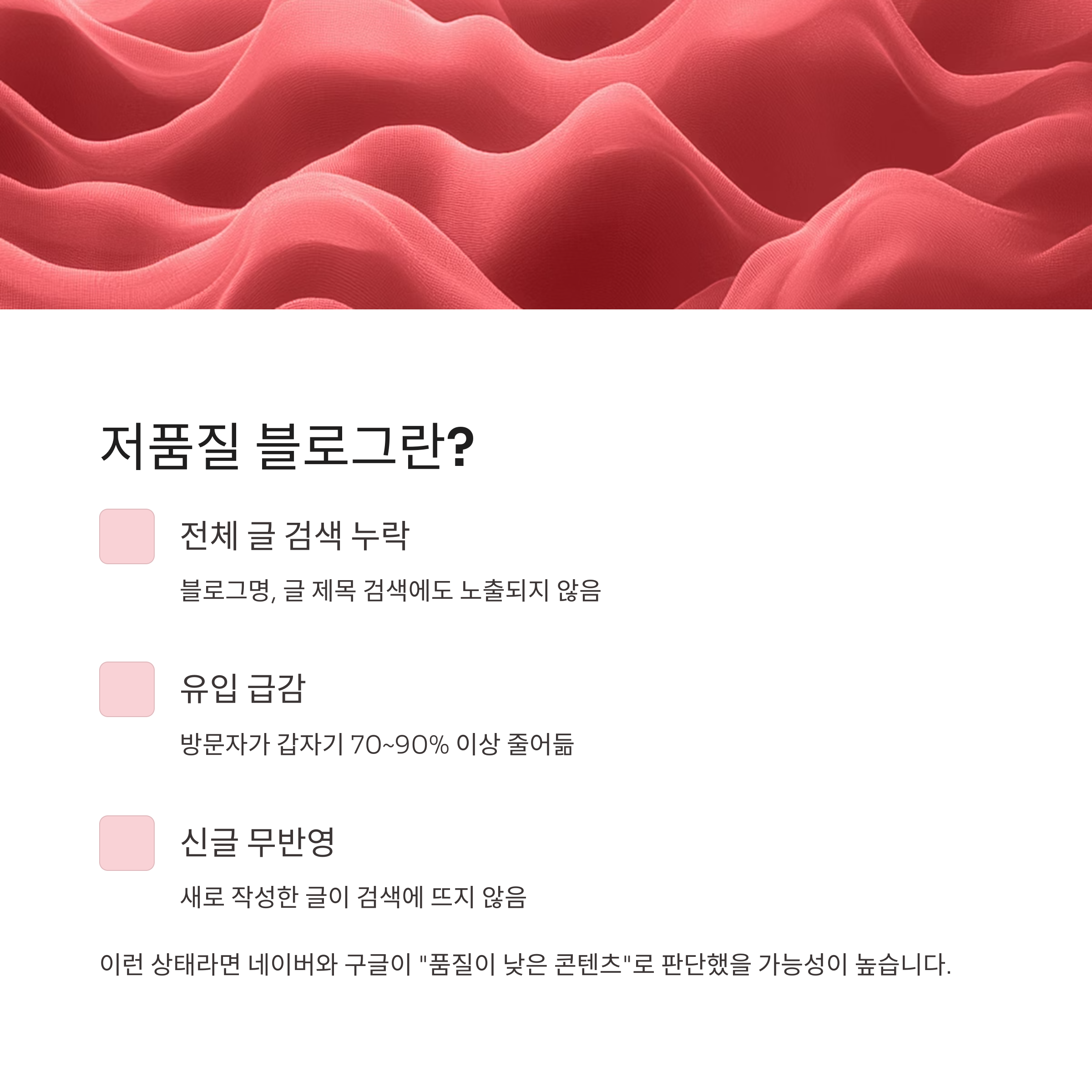 다음은 티스토리 블로그에서 자주 발생하는 저품질 요인입니다.