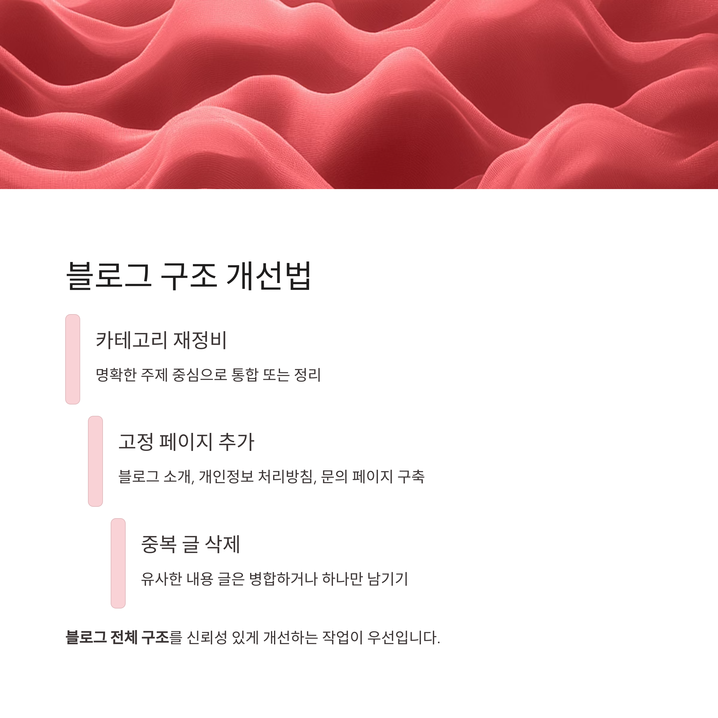 블로그 전체의 구조를 신뢰성 있게 개선하는 작업이 먼저입니다.