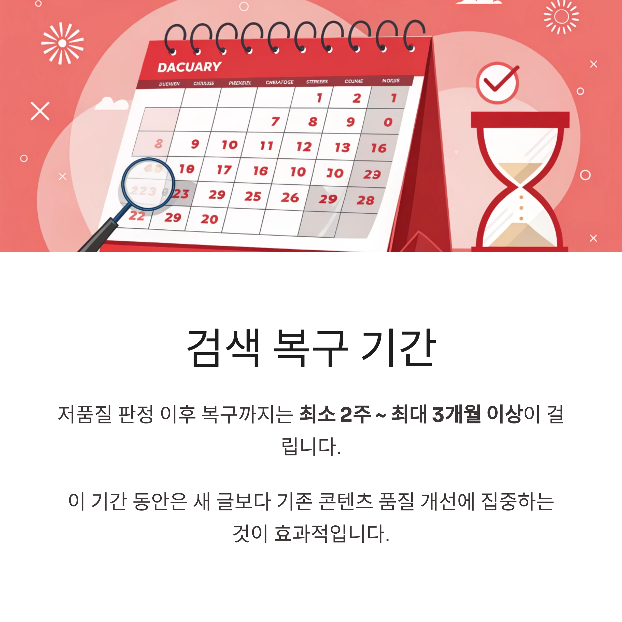 기존 콘텐츠 품질 개선에 집중하는 것이 훨씬 효과적입니다.