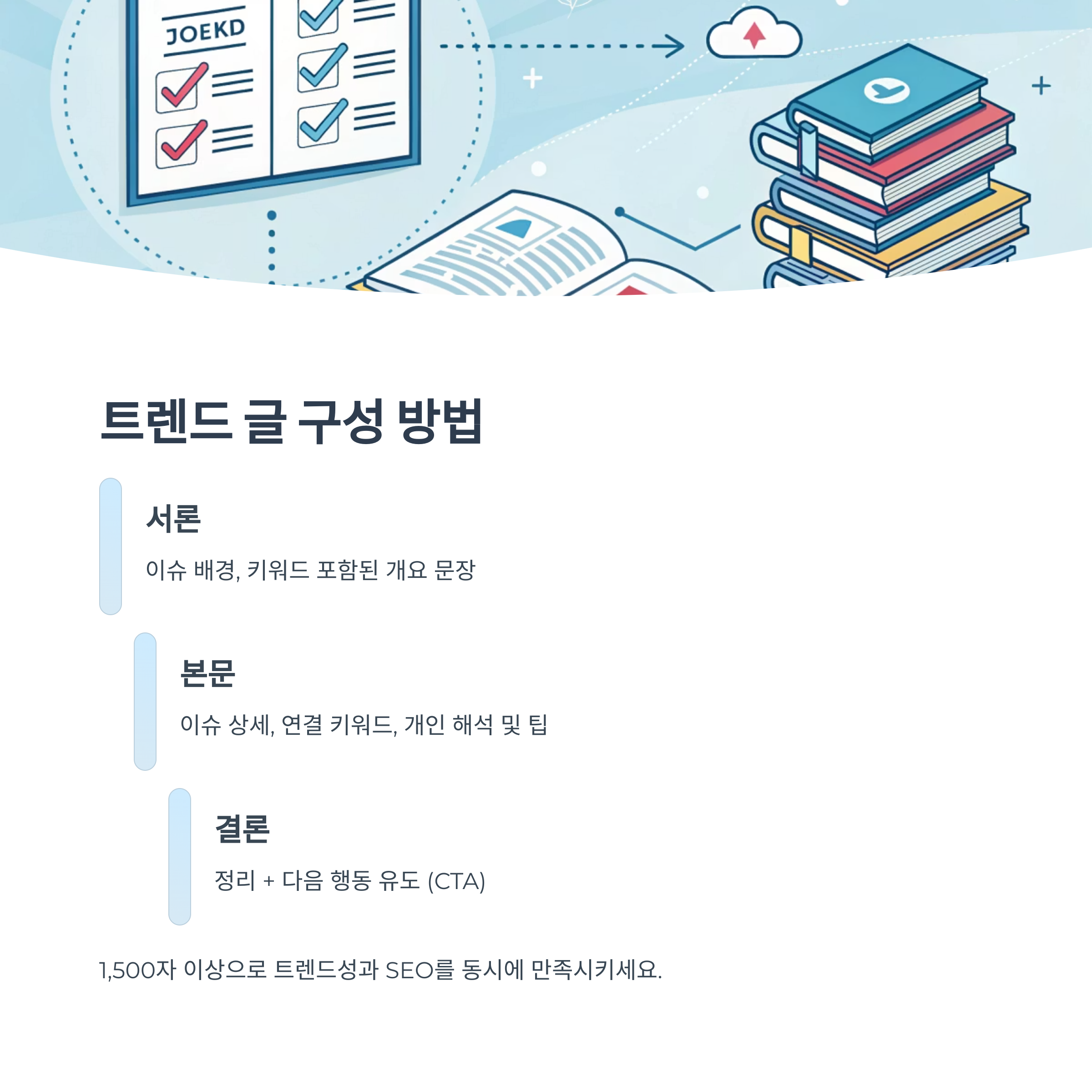 다음과 같은 구조를 따라야 정보성과 트렌드 반응성을 동시에 갖출 수 있습니다.
