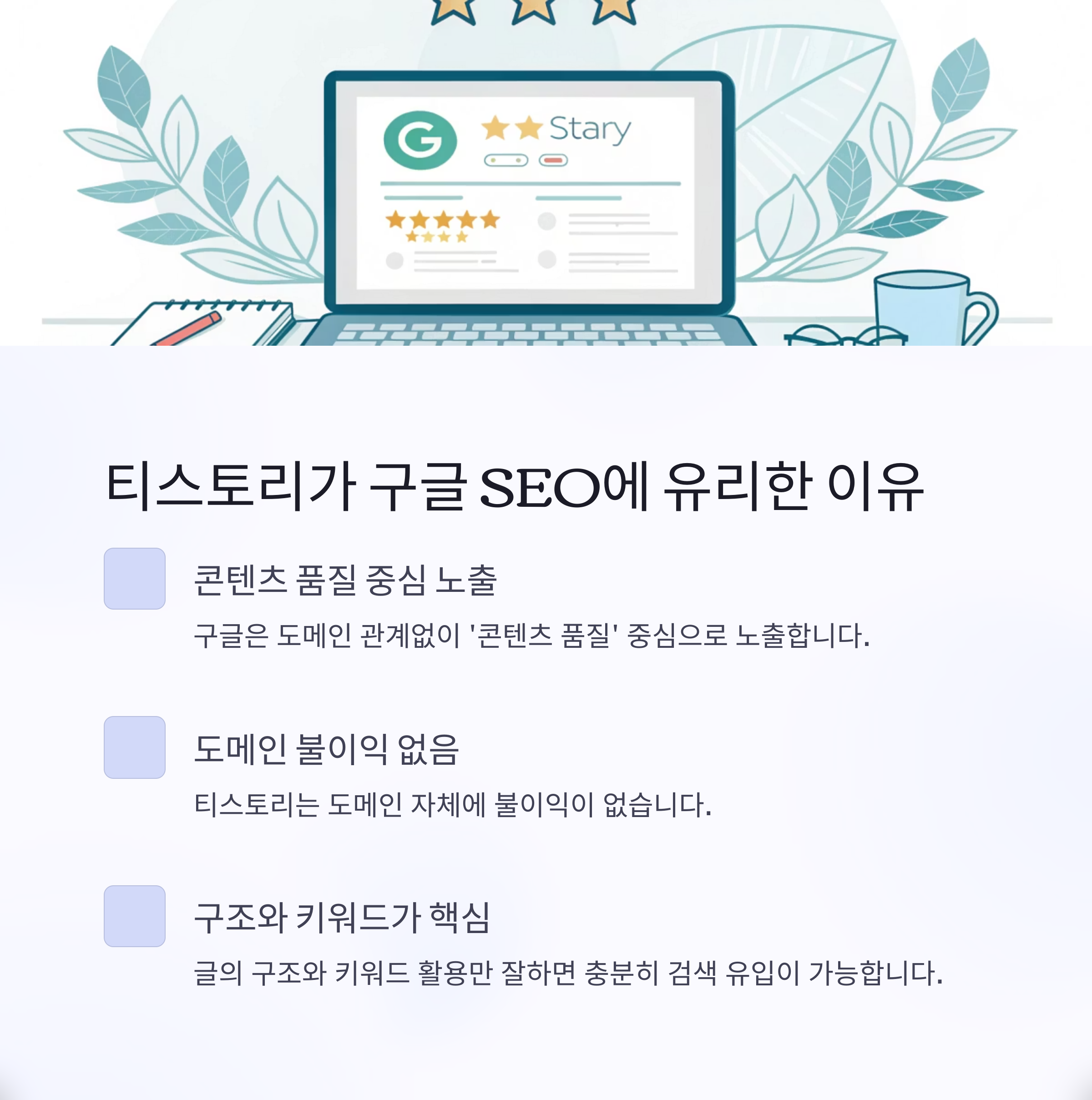 구글은 블로그 도메인 관계없이 ‘콘텐츠 품질’ 중심으로 노출합니다.