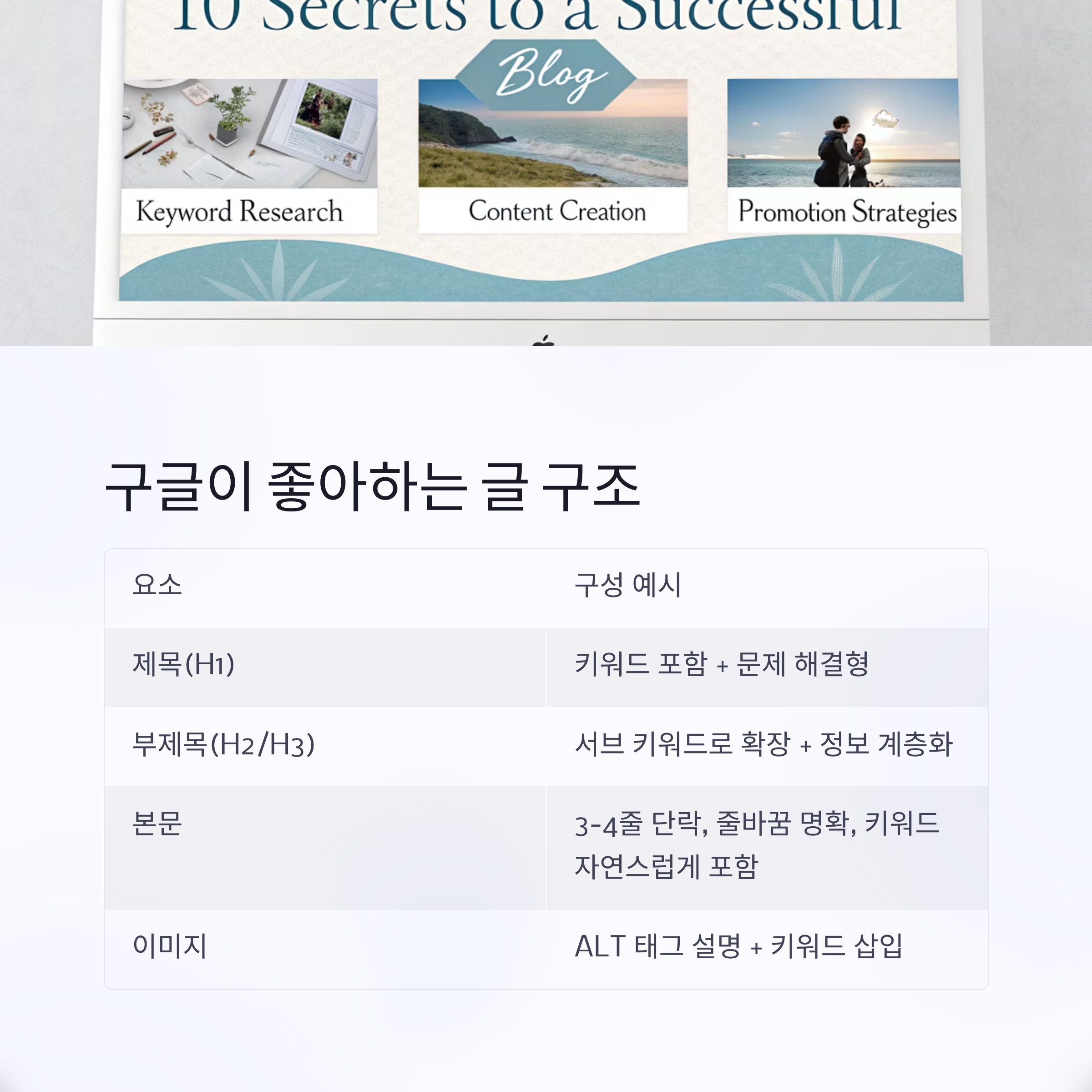 구글 크롤러가 이해하기 쉽고, 독자도 오래 머뭅니다.