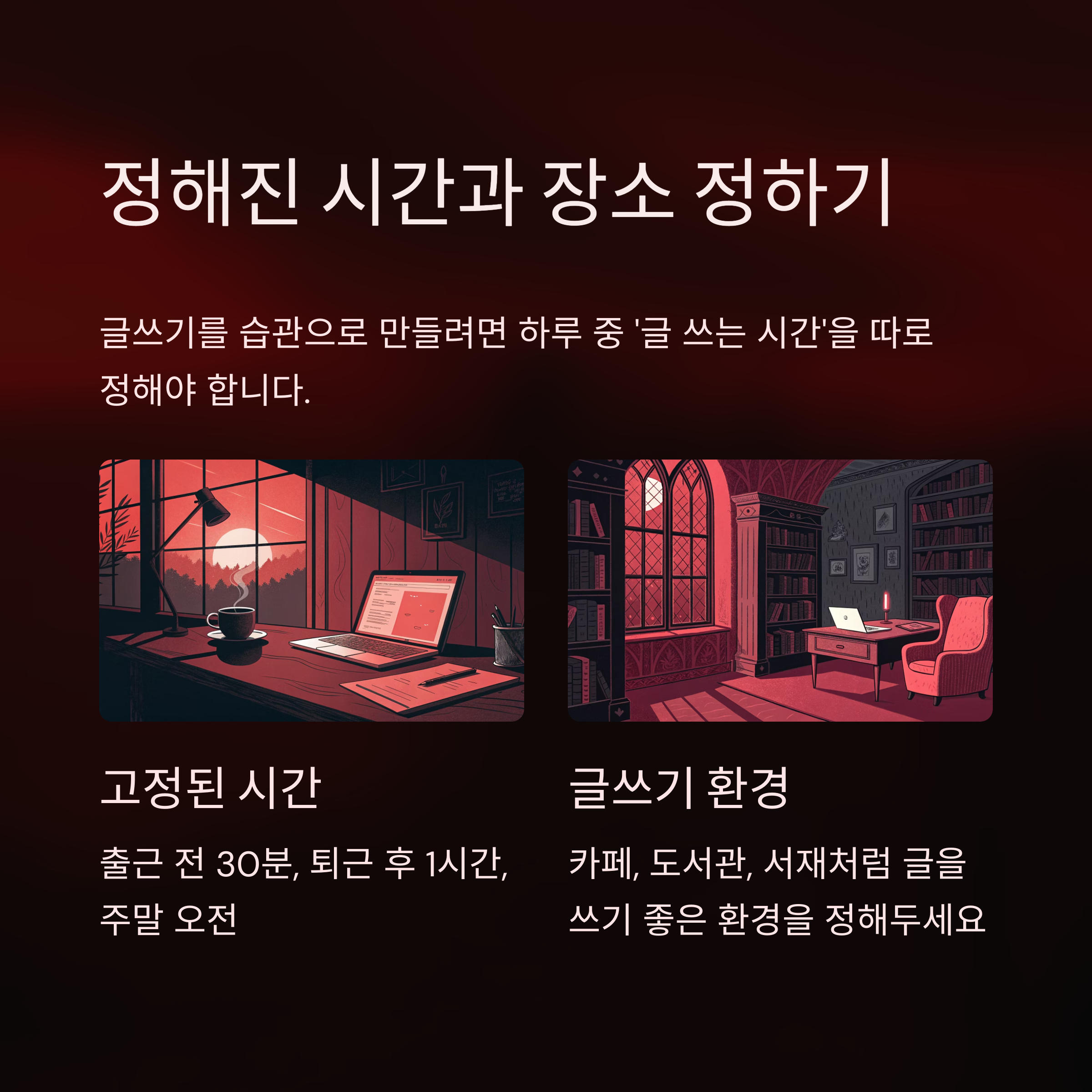 하루 중 ‘글 쓰는 시간’을 따로 정해야 합니다.