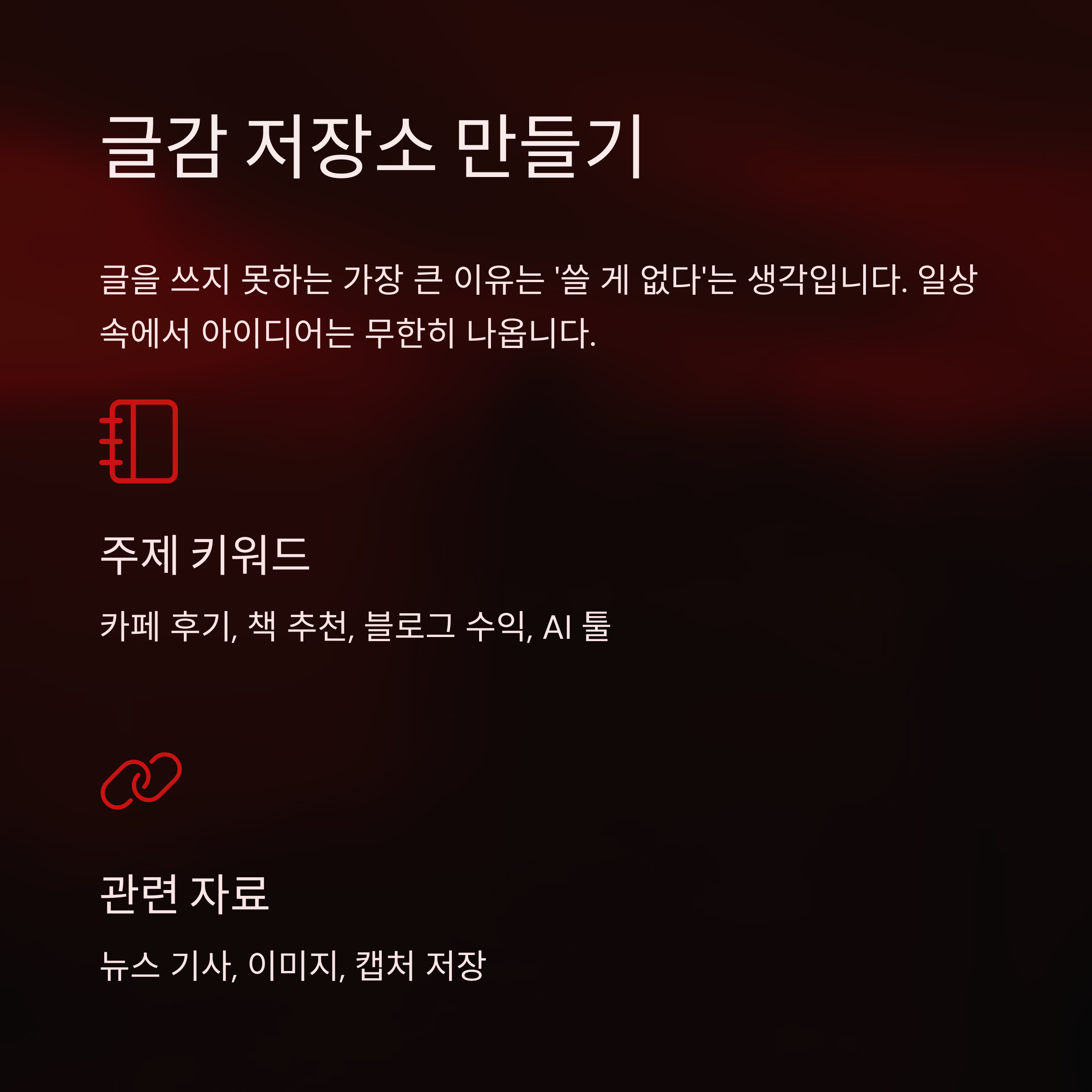 주제 고민 없이도 글쓰기가 수월해집니다.