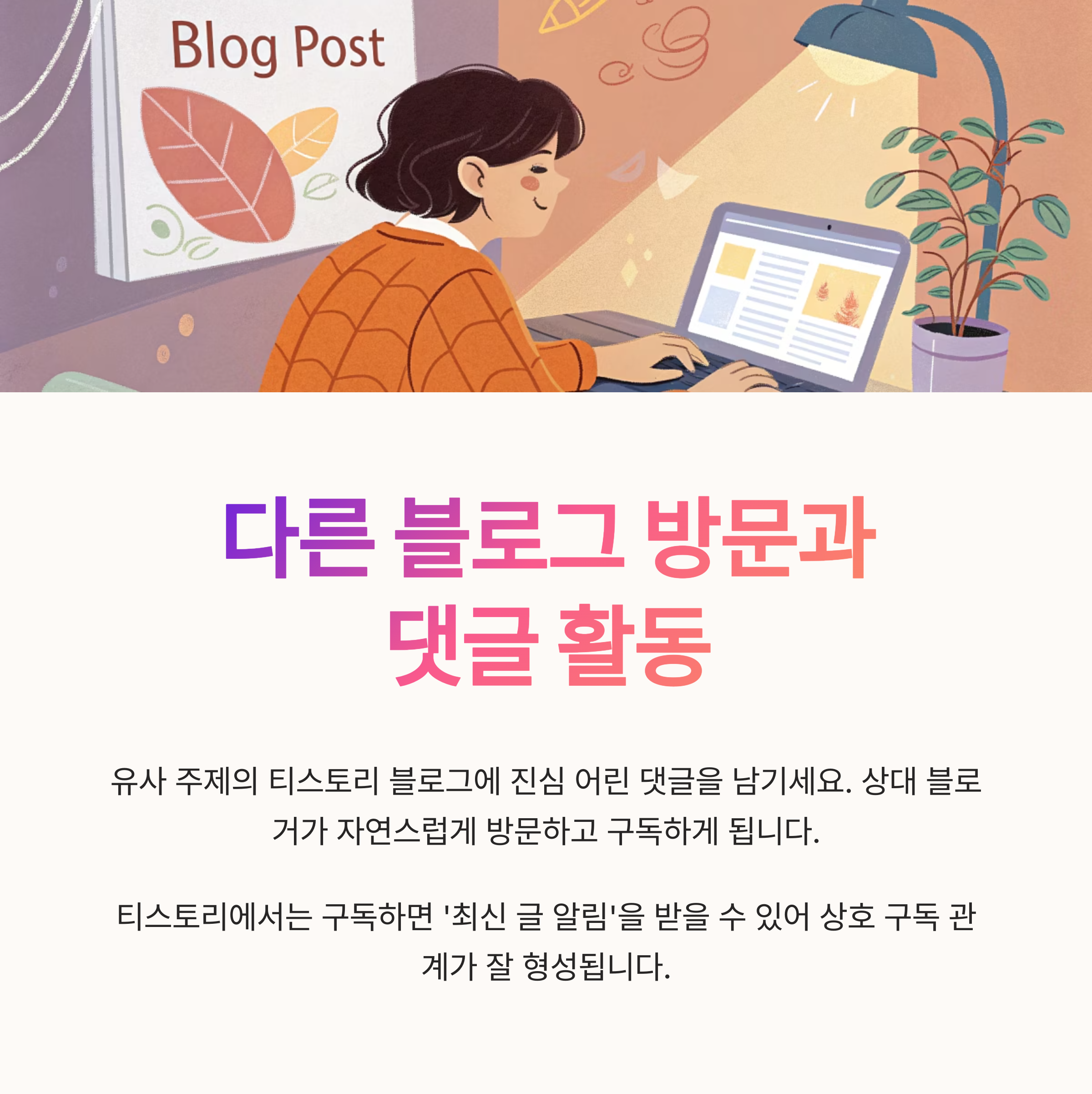 글을 홍보하고, 구독을 유도하는 전략도 효과적입니다.