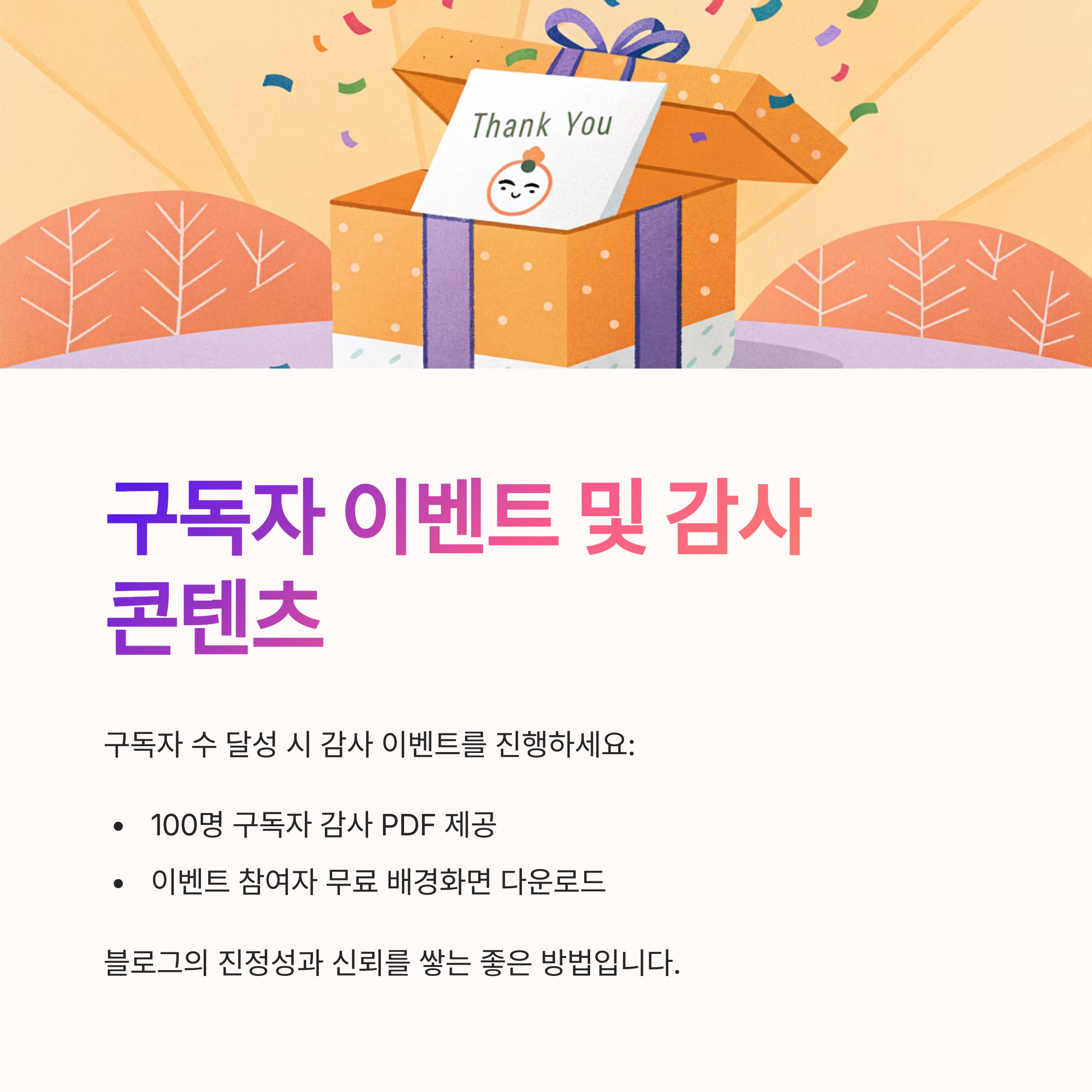 예: “100명 구독자 감사 PDF 제공”,