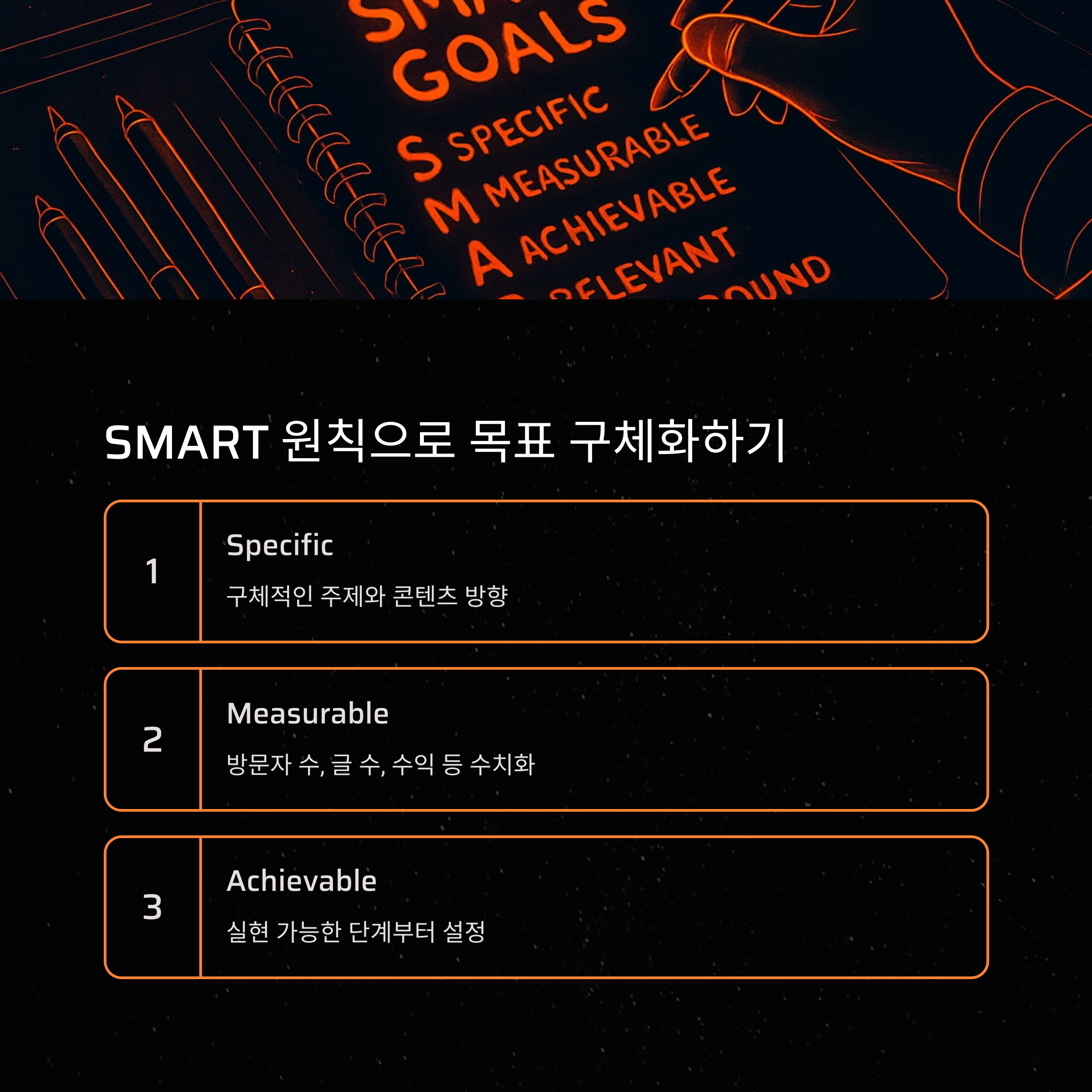 이처럼 블로그 비전은 ‘측정 가능한 목표 + 시간 제한’으로 구성하면
