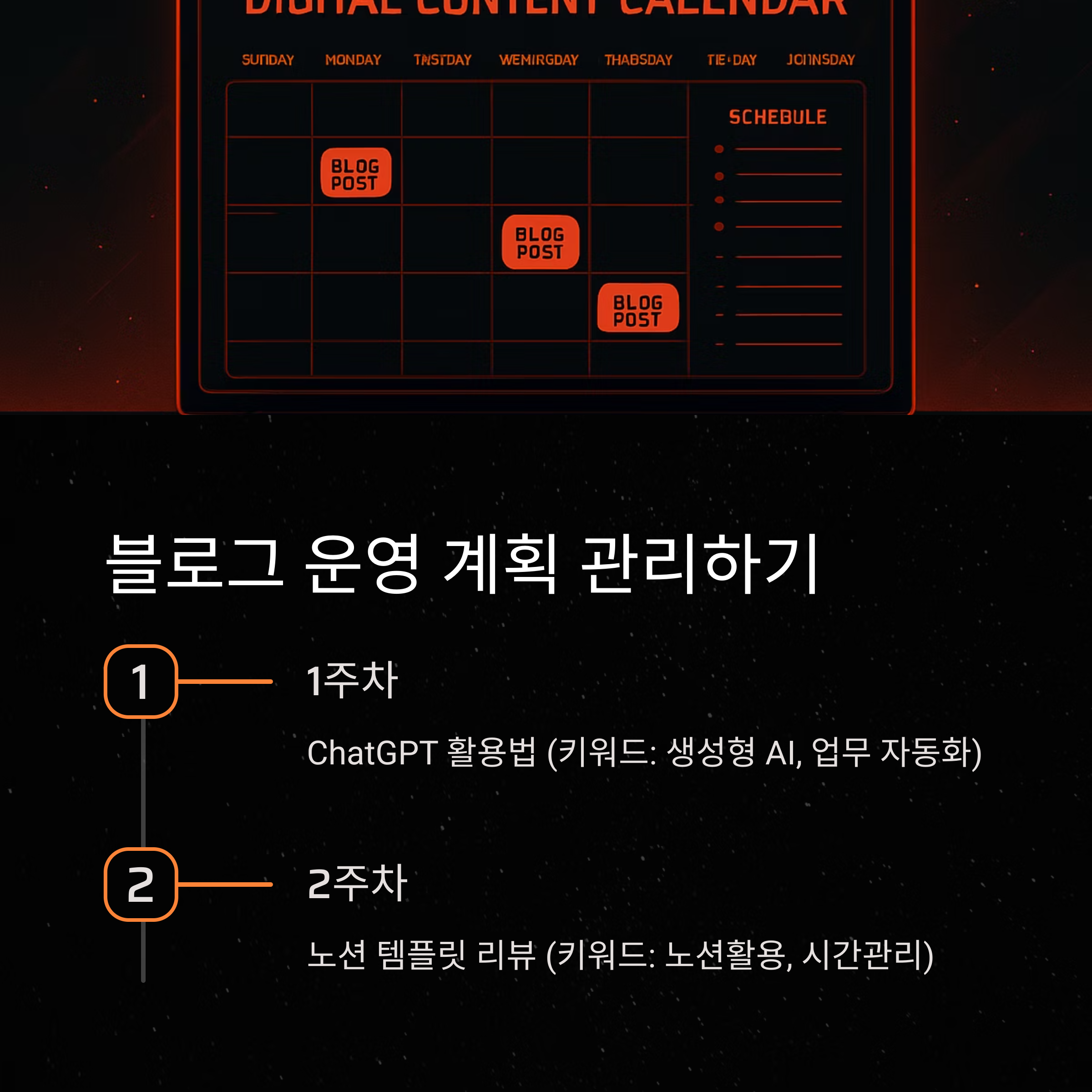 주간/월간 글 발행 계획을 수립하고 키워드와 카테고리를 미리 정리해보세요.
