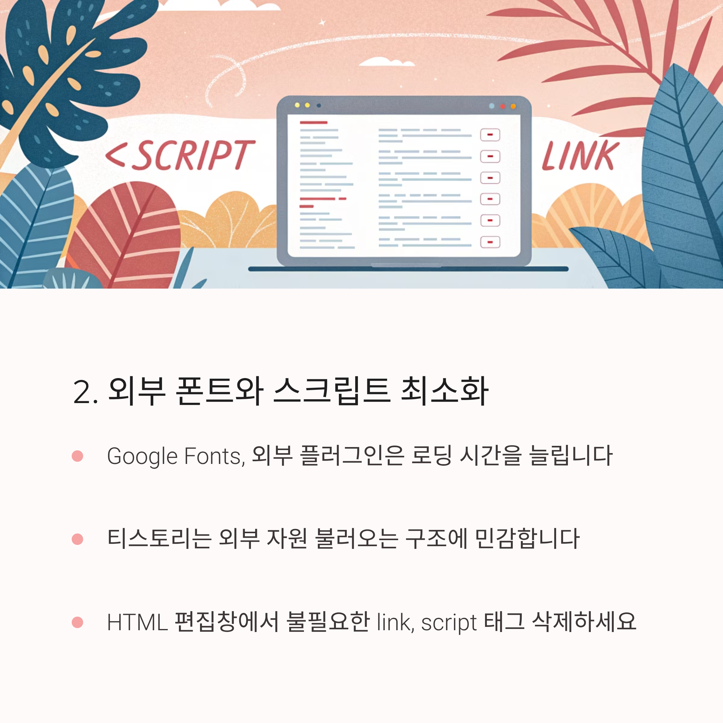 티스토리 블로그를 운영하다 보면 페이지 로딩 속도가 느려지는