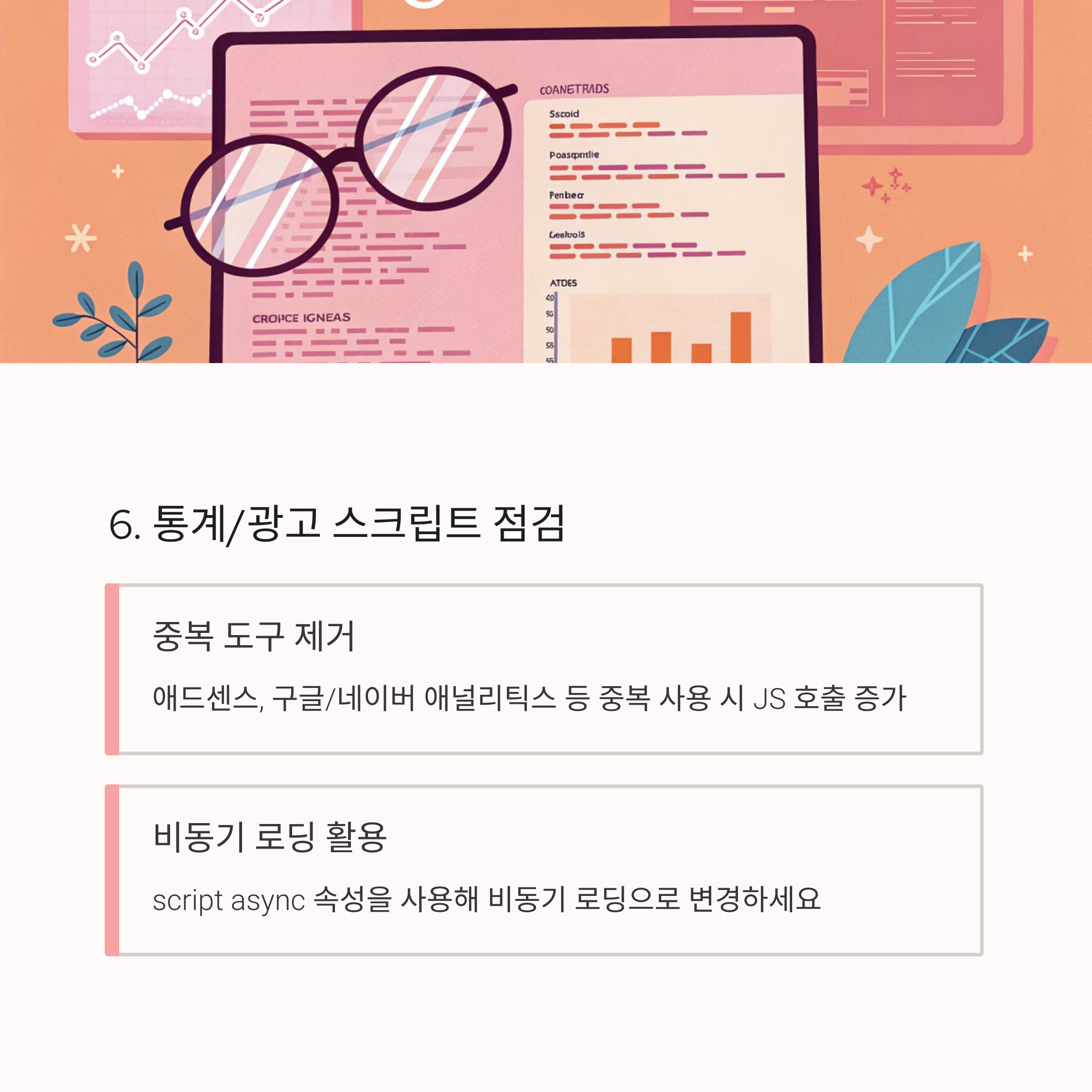 link, script 태그가 과도하게 많다면 삭제를 고려하세요.