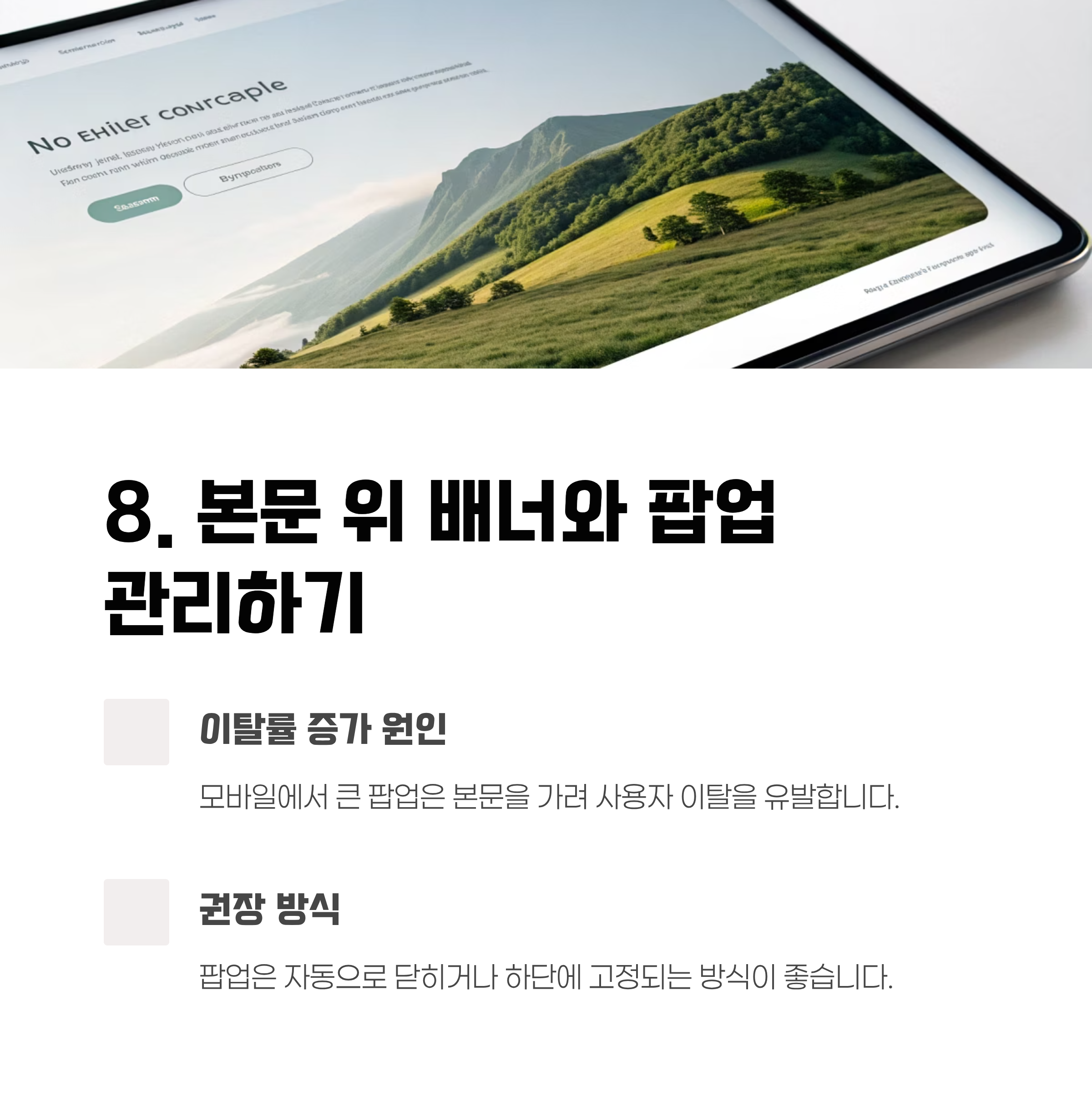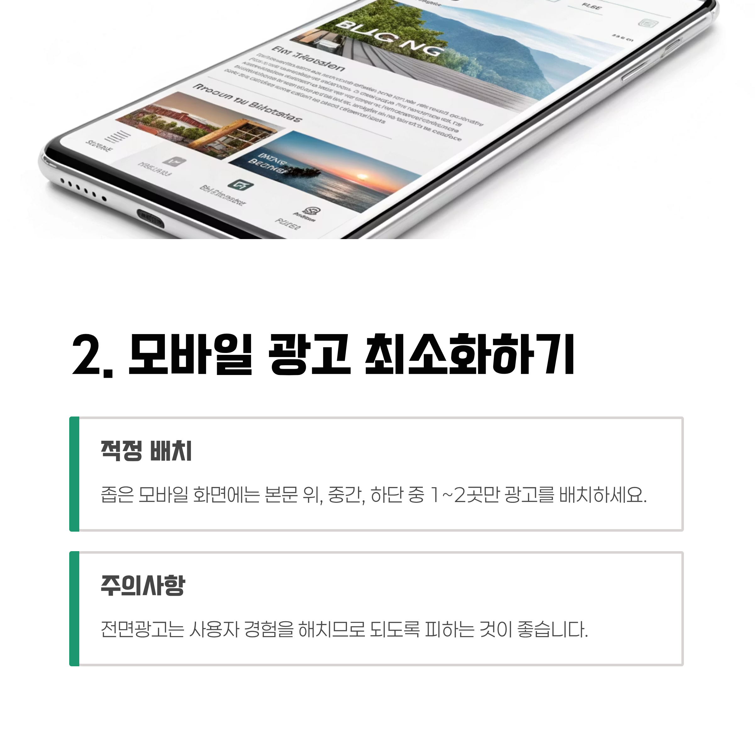 본문 위, 중간, 하단 중 1~2곳만 최소화하여 설정하는 것이 좋습니다.
