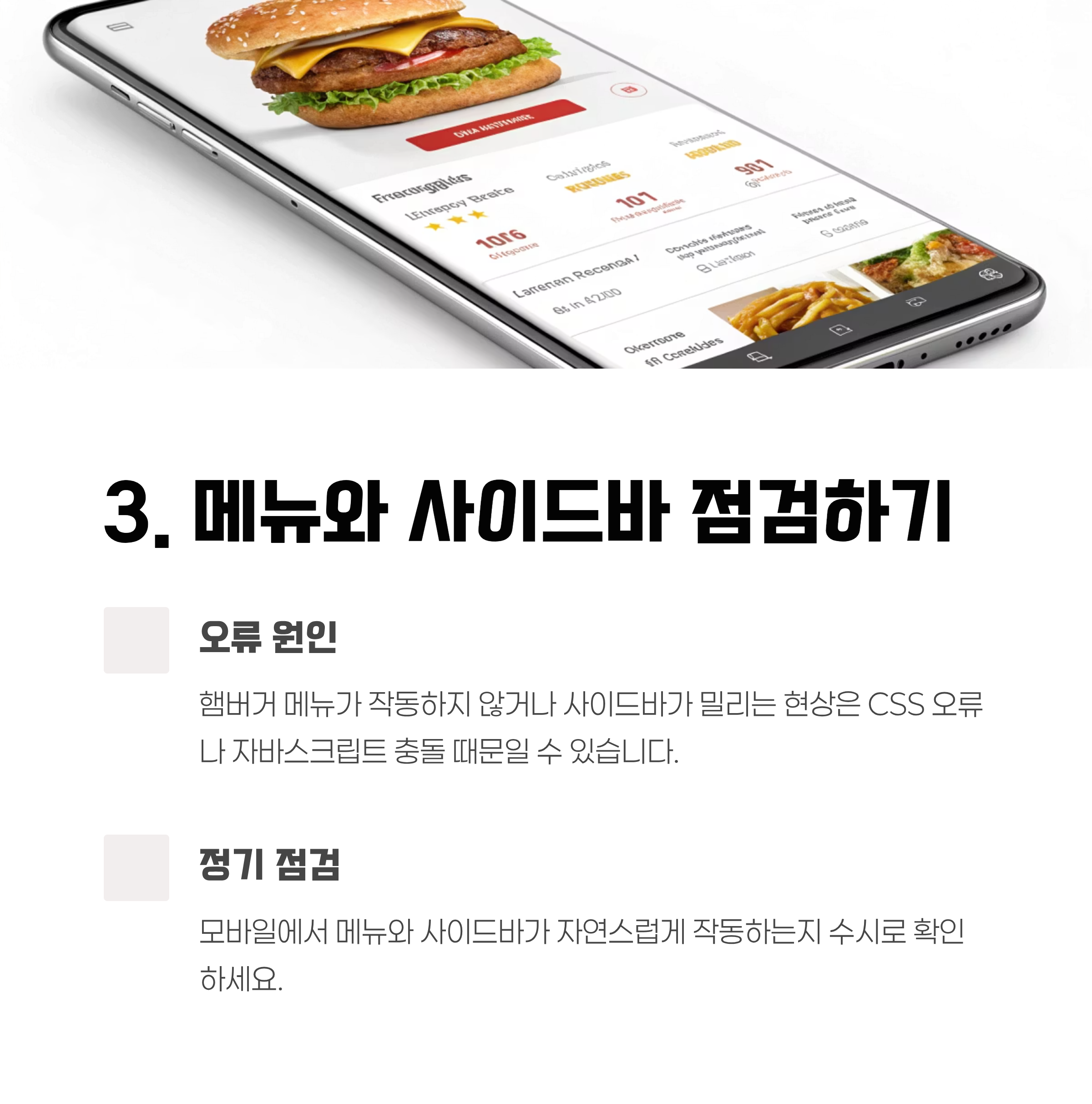 3. 메뉴 버튼 및 사이드바 정상 작동 여부
