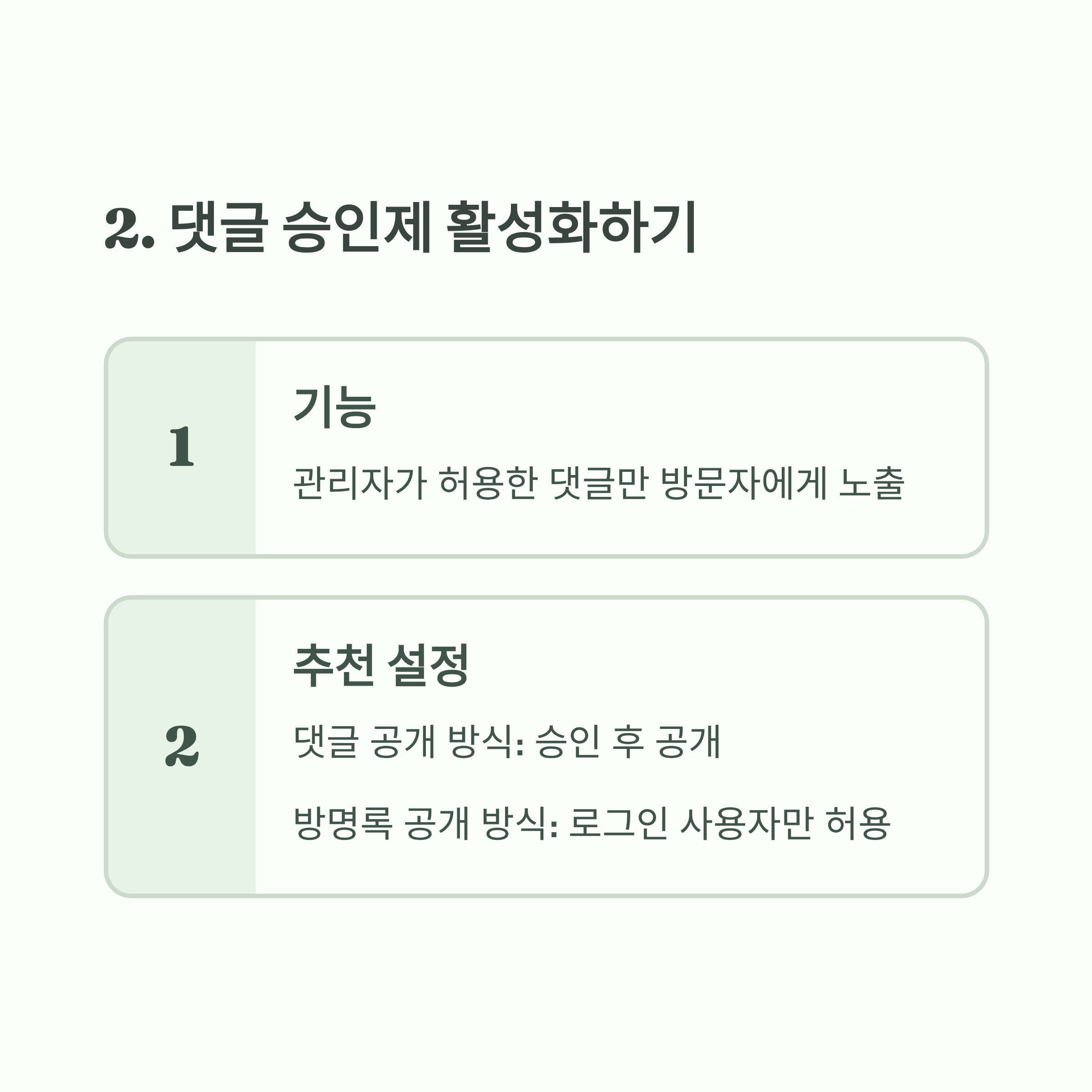 댓글 승인제를 설정하면 관리자가 허용한 댓글만
