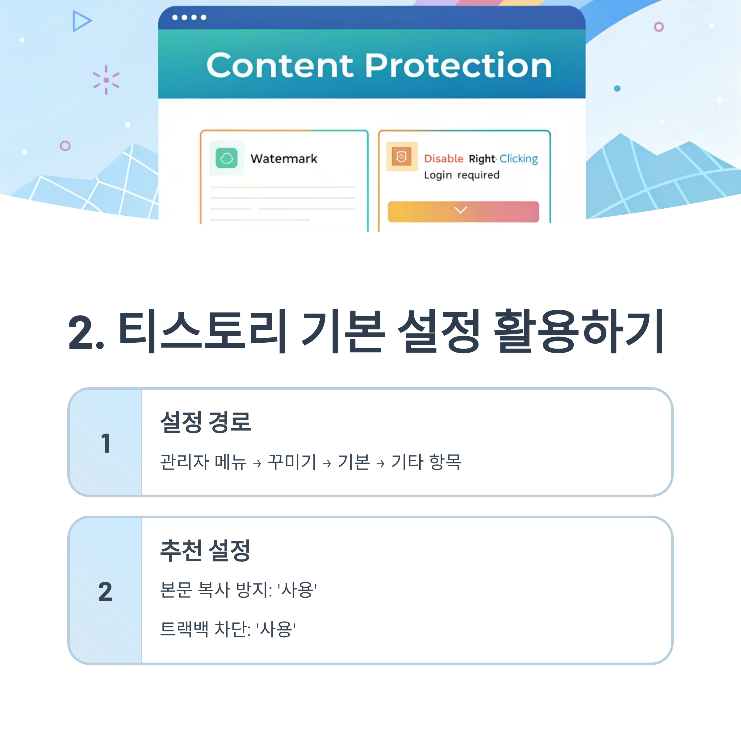 2. 티스토리 설정 메뉴에서 복사 방지 활성화