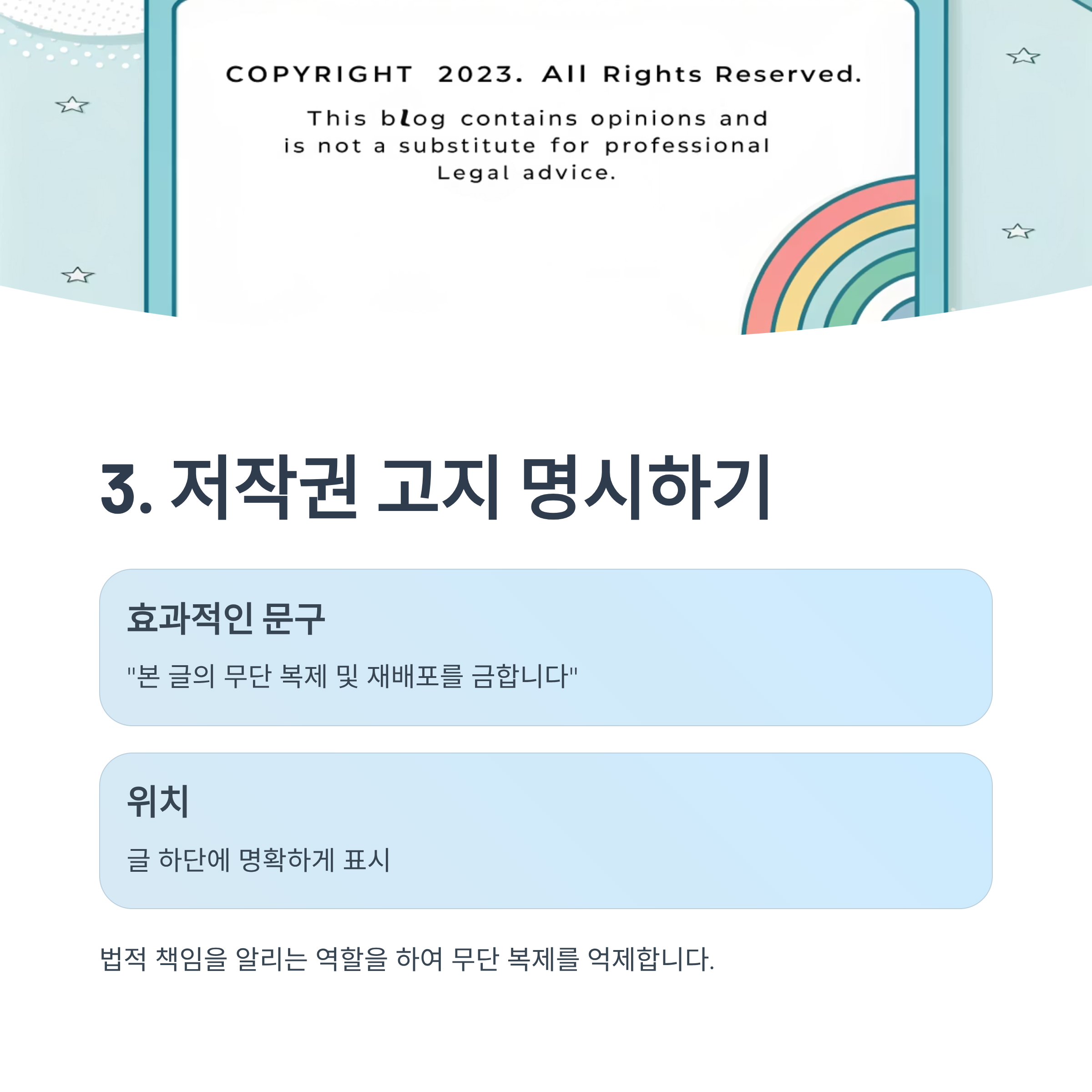 “본 글의 무단 복제 및 재배포를 금합니다”와 같은