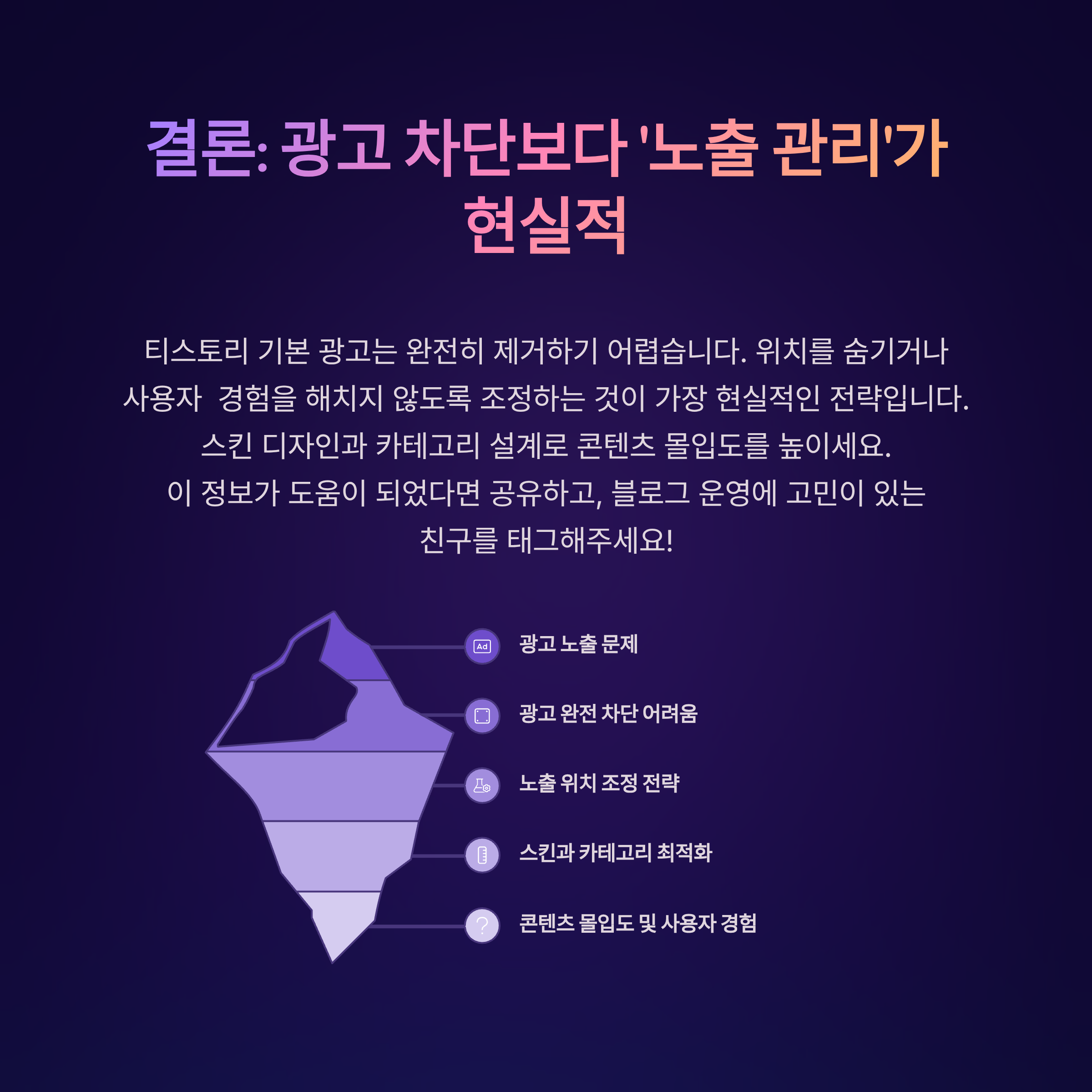 티스토리의 기본 광고는 완전히 제거하기는 어렵지만,